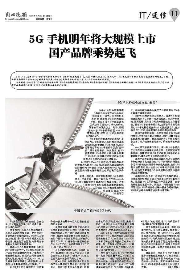 5G手机明年将大规模上市 国产品牌乘势起飞
