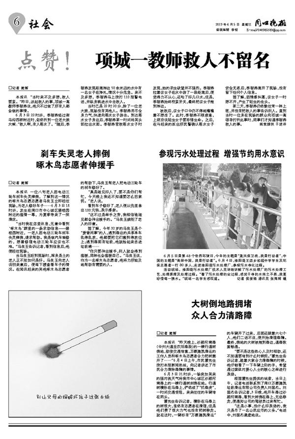 点赞!项城一教师救人不留名