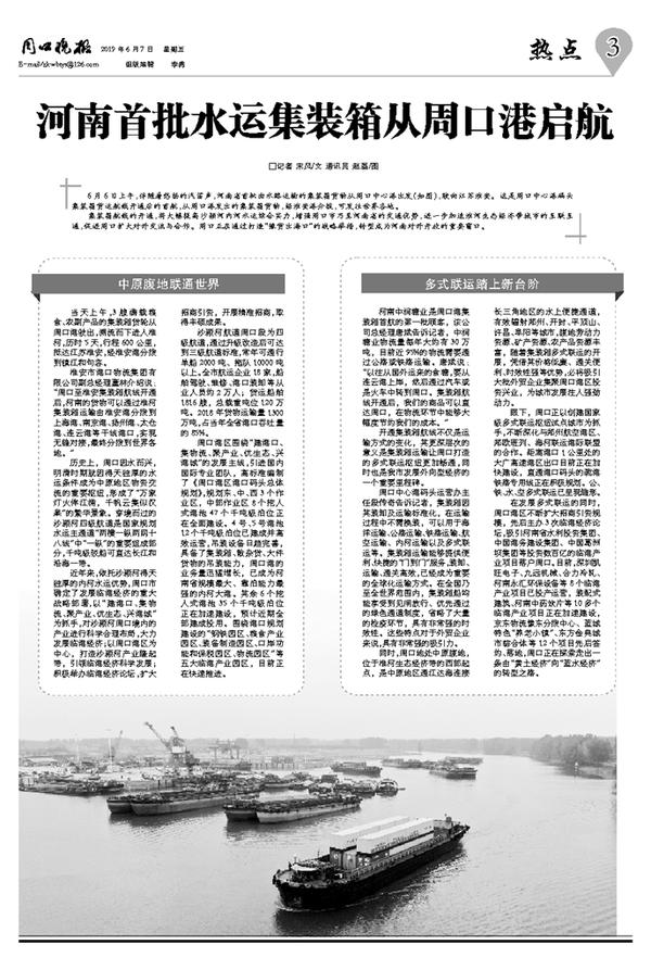 河南首批水运集装箱从周口港启航