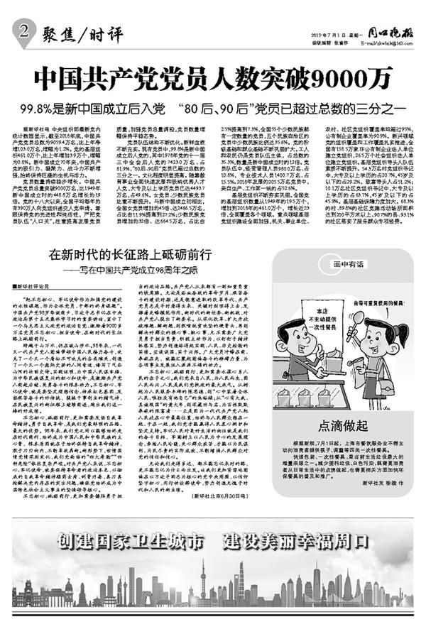 中国共产党党员人数突破9000万