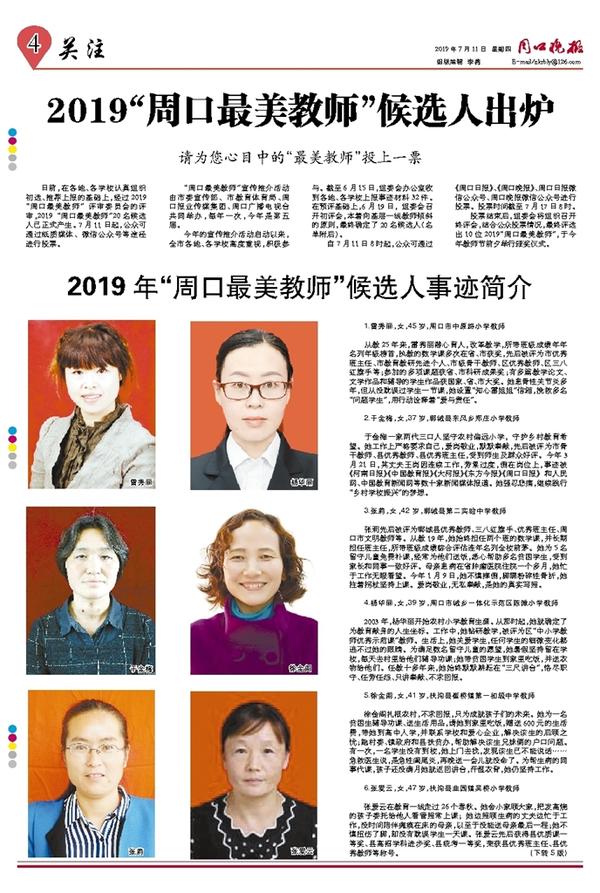 2019“周口最美教师”候选人出炉