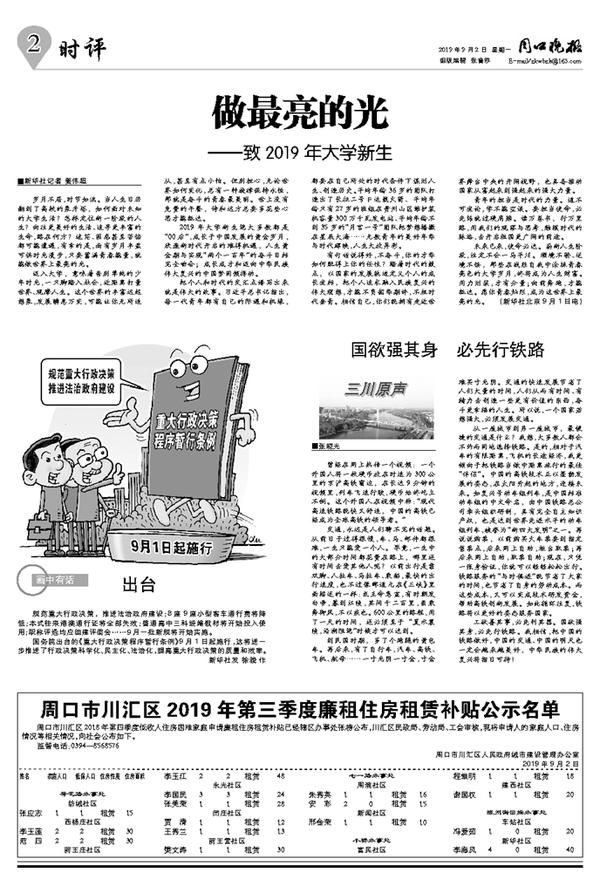 周口市川汇区2019年第三季度廉租住房租赁补贴公示名单