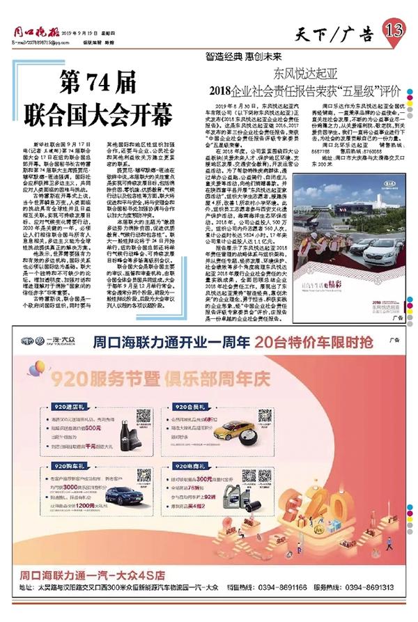 东风悦达起亚2018企业社会责任报告荣获“五星级”评价