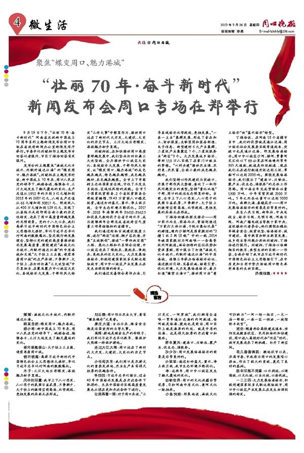 “壮丽70年•奋斗新时代” 新闻发布会周口专场在郑举行