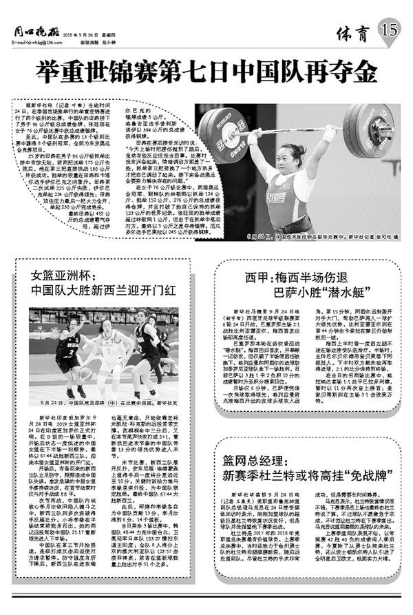 举重世锦赛第七日中国队再夺金