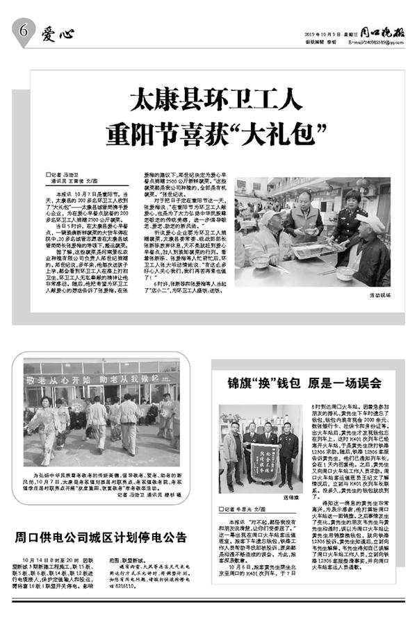 太康县环卫工人重阳节喜获“大礼包”