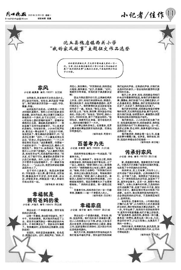沈丘县槐店镇西关小学 “我的家风故事”主题征文作品选登