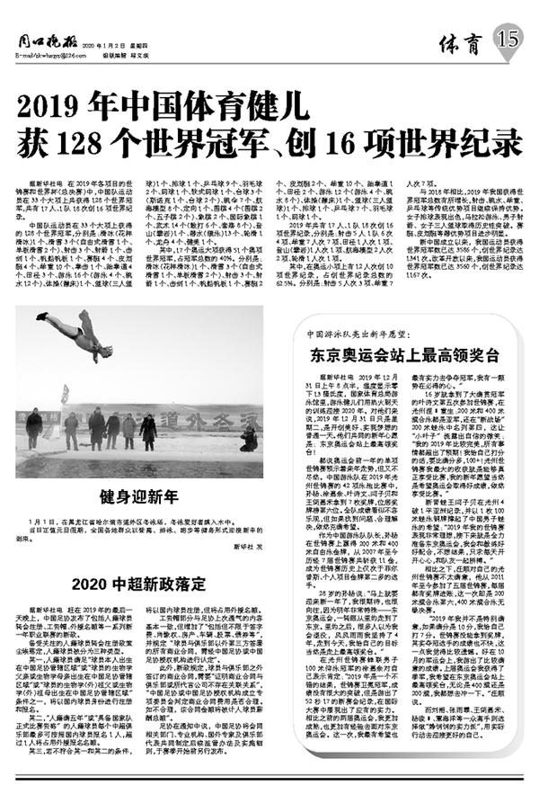 2019年中国体育健儿获128个世界冠军、创16项世界纪录