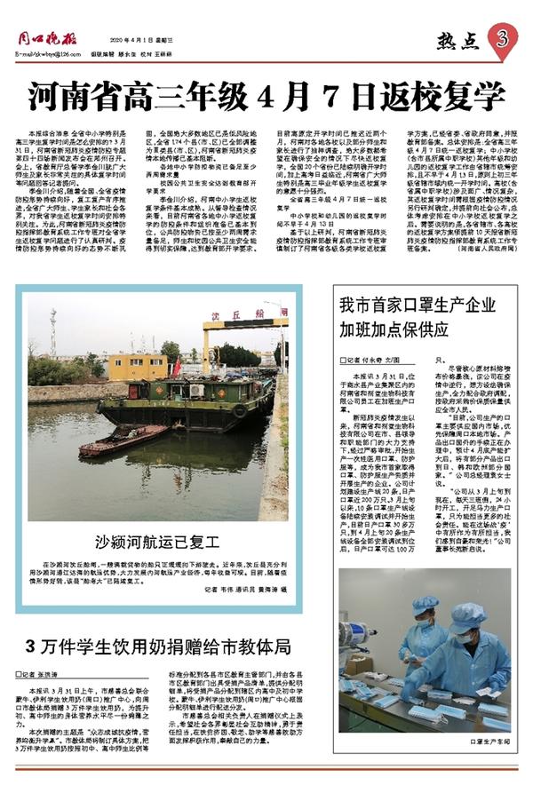 河南省高三年级4月7日返校复学