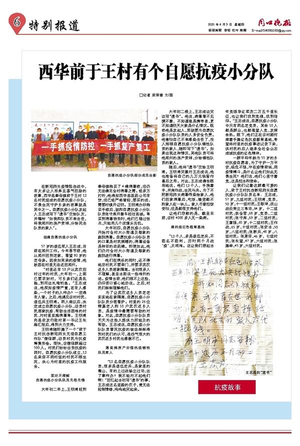 西华前于王村有个自愿抗疫小分队