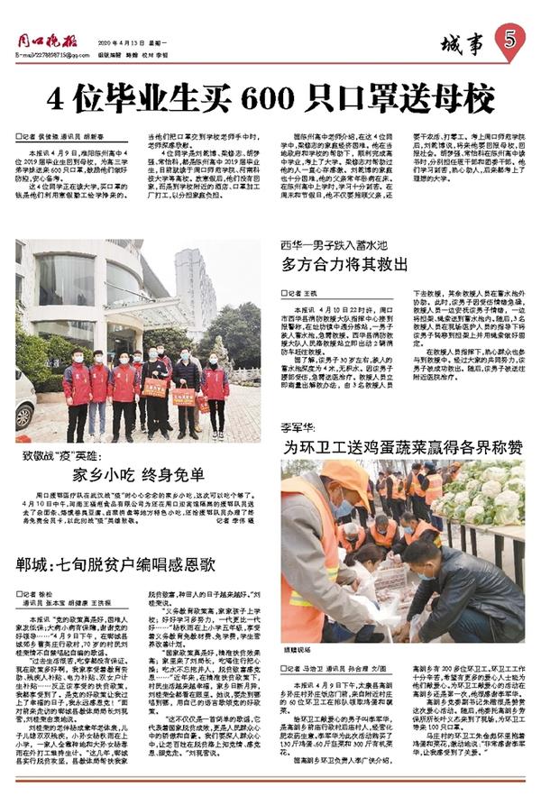 4位毕业生买600只口罩送母校