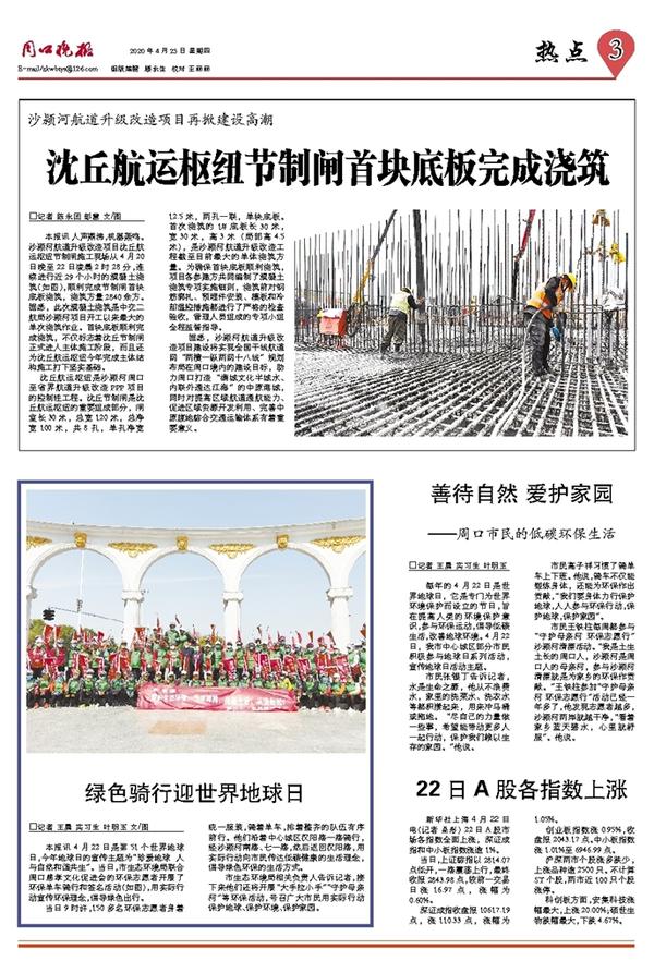 沈丘航运枢纽节制闸首块底板完成浇筑