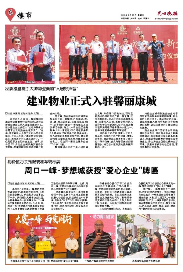 周口一峰·梦想城获授“爱心企业”牌匾