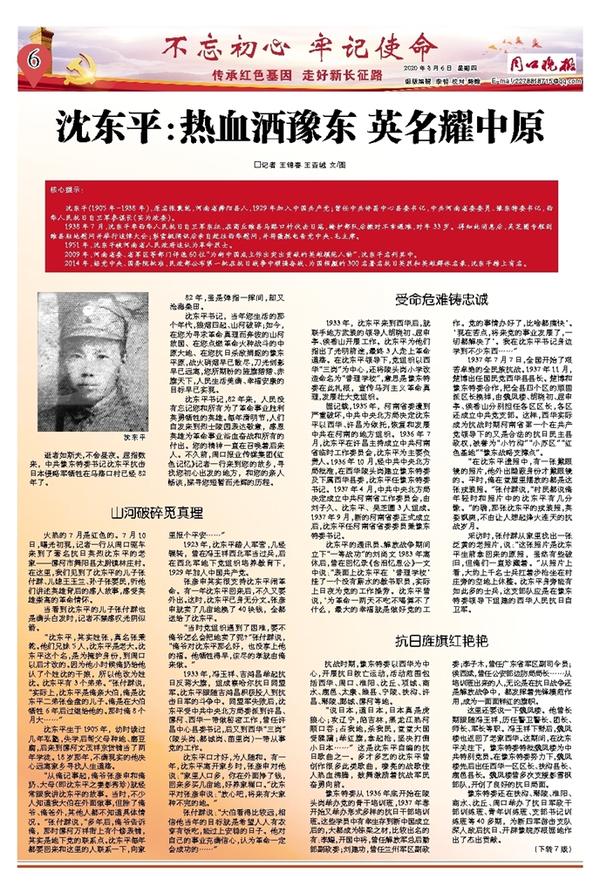 沈东平:热血洒豫东 英名耀中原