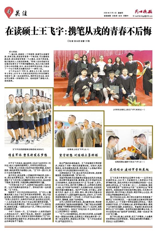 在读硕士王飞宇:携笔从戎的青春不后悔
