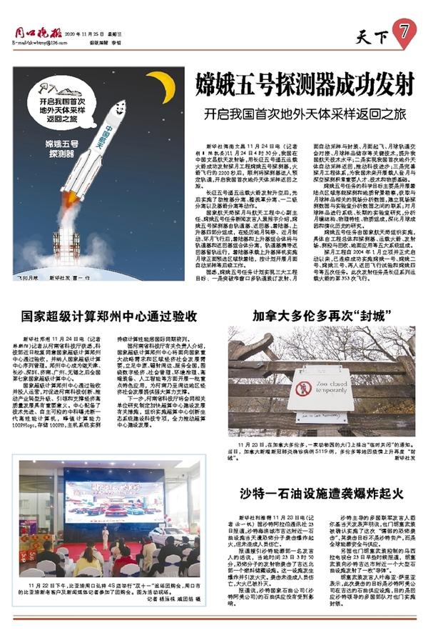嫦娥五号探测器成功发射
