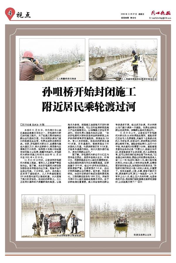 孙咀桥开始封闭施工 附近居民乘轮渡过河
