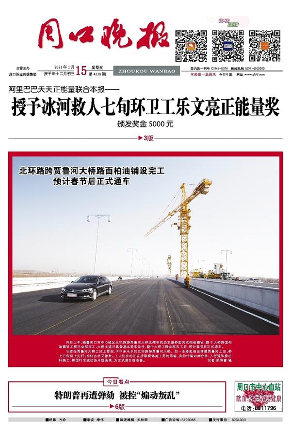 北环路跨贾鲁河大桥路面柏油铺设完工 预计春节后正式通车