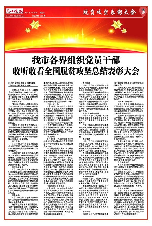 我市各界组织党员干部收听收看全国脱贫攻坚总结表彰大会