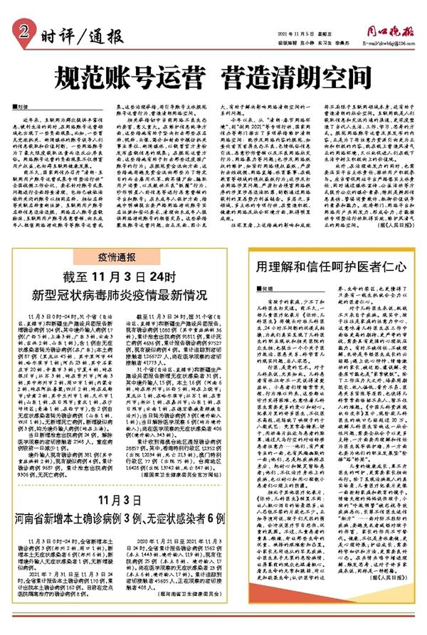 11月3日河南省新增本土确诊病例3例、无症状感染者6例