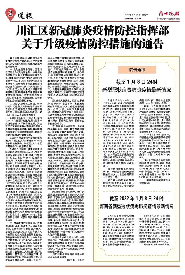 截至2022年1月8日24时河南省新型冠状病毒肺炎疫情最新情况