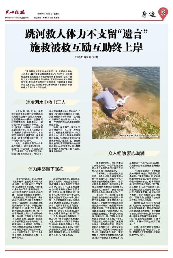跳河救人体力不支留“遗言” 施救被救互励互助终上岸