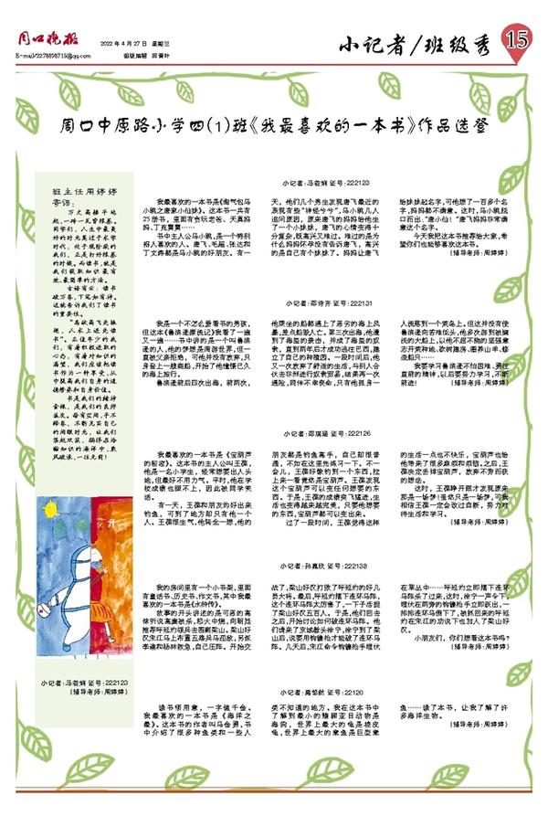 周口中原路小学四(1)班《我最喜欢的一本书》作品选登