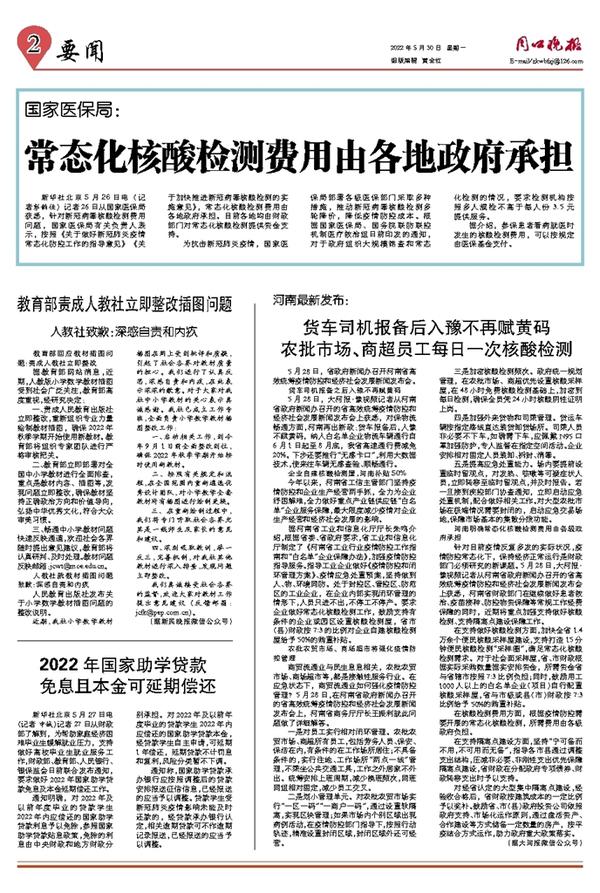 货车司机报备后入豫不再赋黄码 农批市场、商超员工每日一次核酸检测