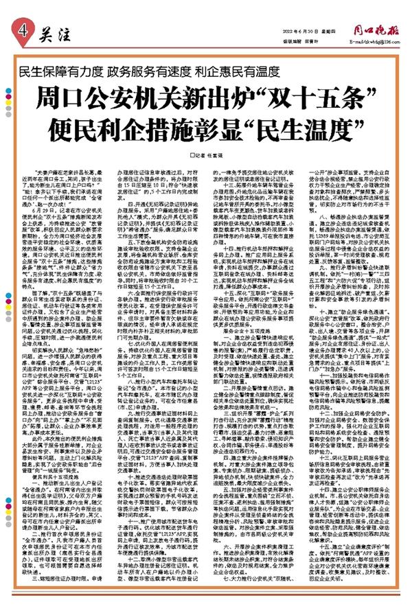 周口公安机关新出炉“双十五条”便民利企措施彰显“民生温度”