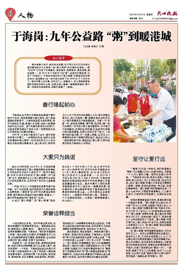 于海岗:九年公益路 “粥”到暖港城