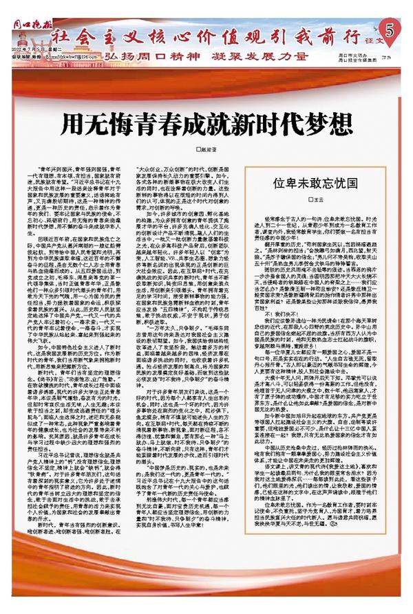 用无悔青春成就新时代梦想