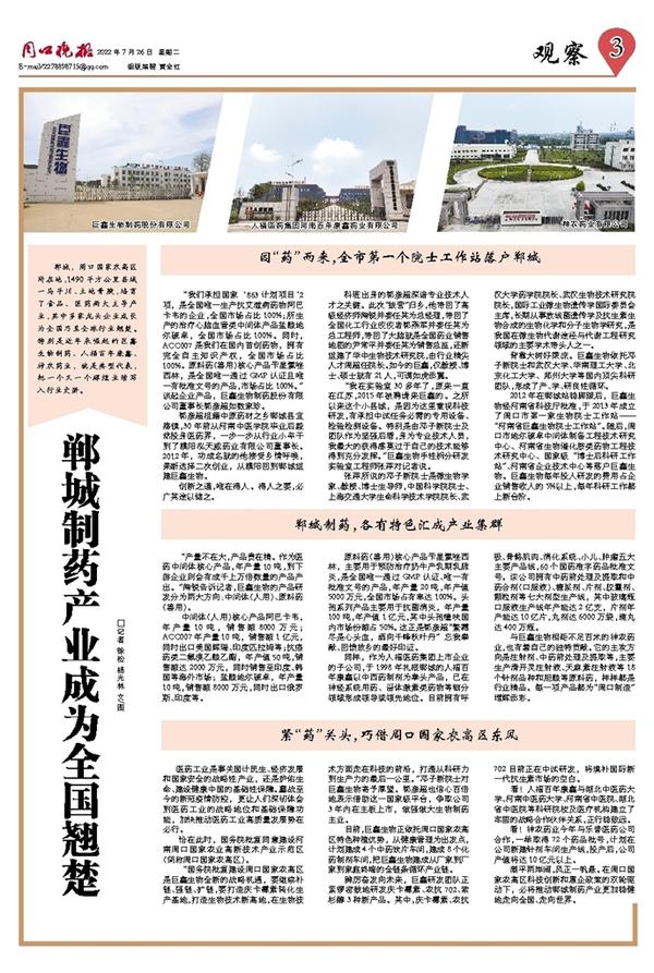 郸城制药产业成为全国翘楚