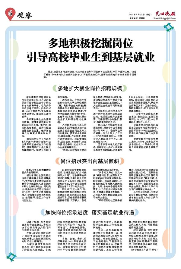 多地积极挖掘岗位引导高校毕业生到基层就业