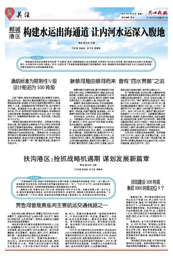 郸城 港区构建水运出海通道 让内河水运深入腹地