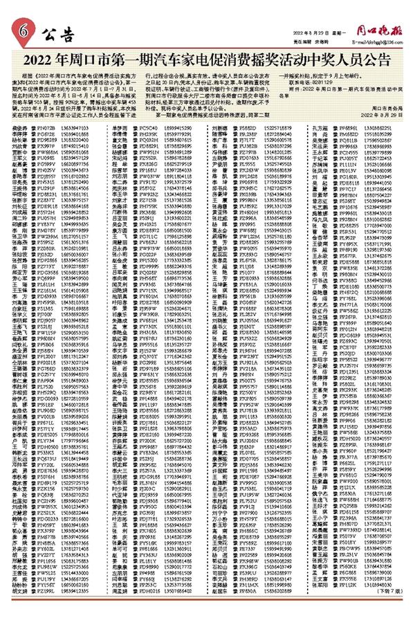 2022年周口市第一期汽车家电促消费摇奖活动中奖人员公告