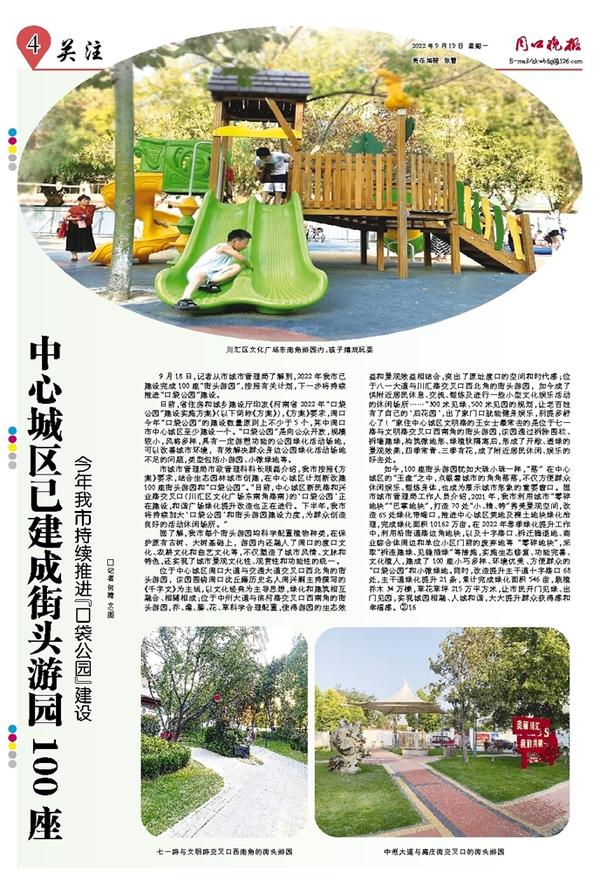 中心城区已建成街头游园100座