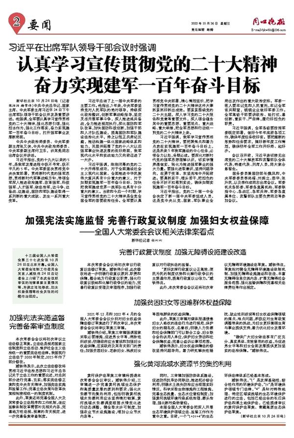 认真学习宣传贯彻党的二十大精神 奋力实现建军一百年奋斗目标