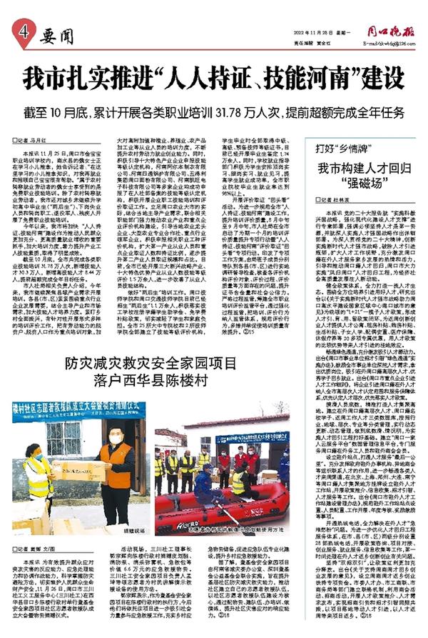 防灾减灾救灾安全家园项目落户西华县陈楼村