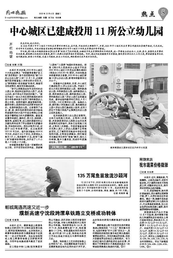 中心城区已建成投用11所公立幼儿园