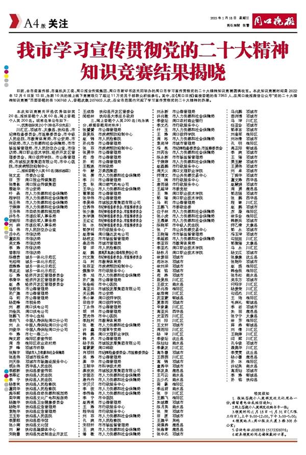 我市学习宣传贯彻党的二十大精神知识竞赛结果揭晓
