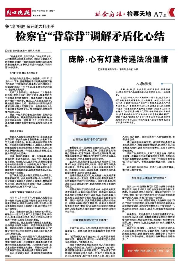 庞静:心有灯盏传递法治温情