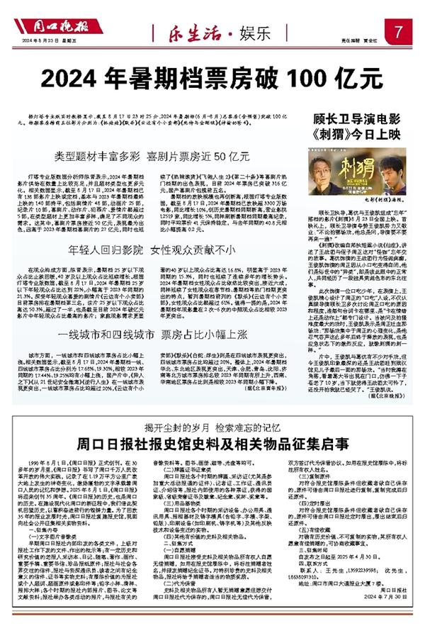 2024年暑期档票房破100亿元