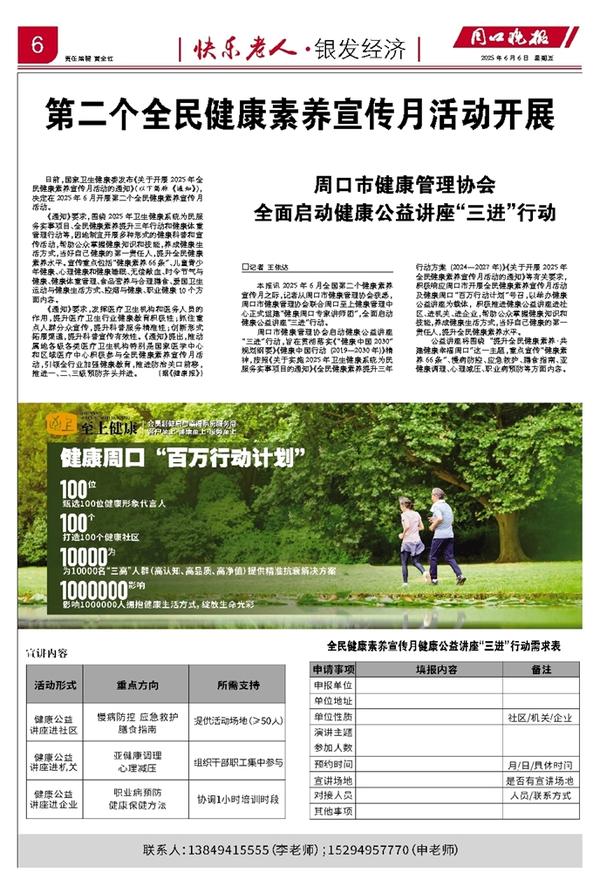 周口市健康管理协会全面启动健康公益讲座“三进”行动