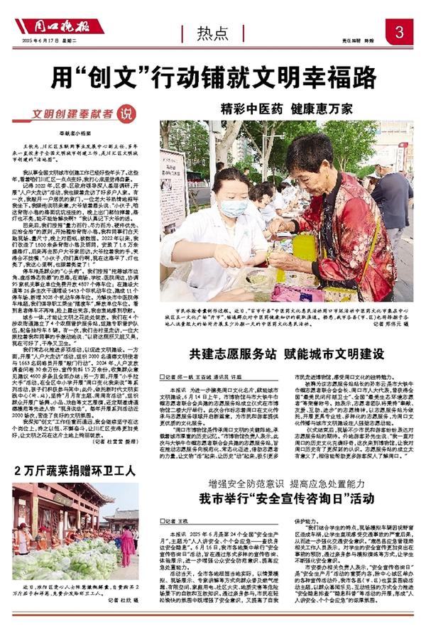 用“创文”行动铺就文明幸福路(文明创建奉献者说)