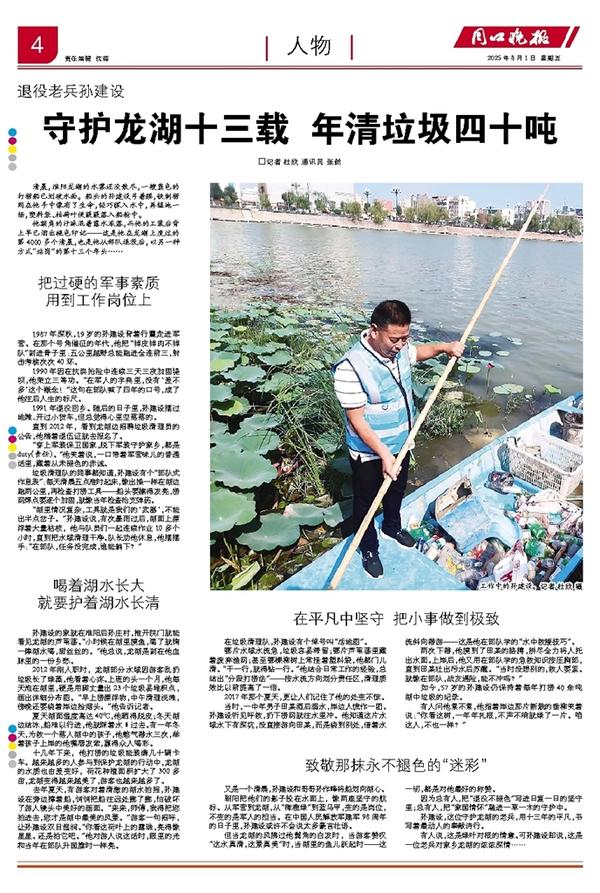 守护龙湖十三载 年清垃圾四十吨
