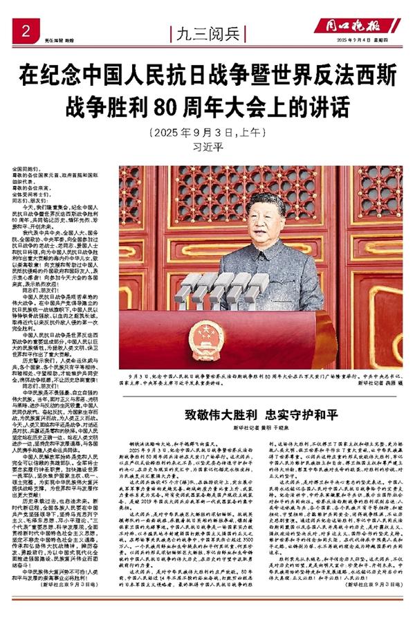 在纪念中国人民抗日战争暨世界反法西斯 战争胜利80周年大会上的讲话