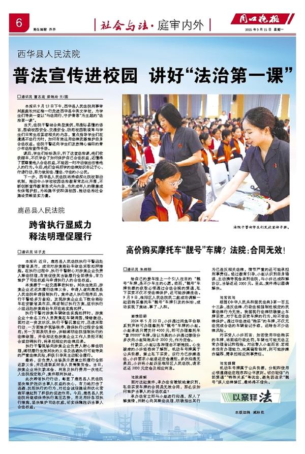 普法宣传进校园 讲好“法治第一课”
