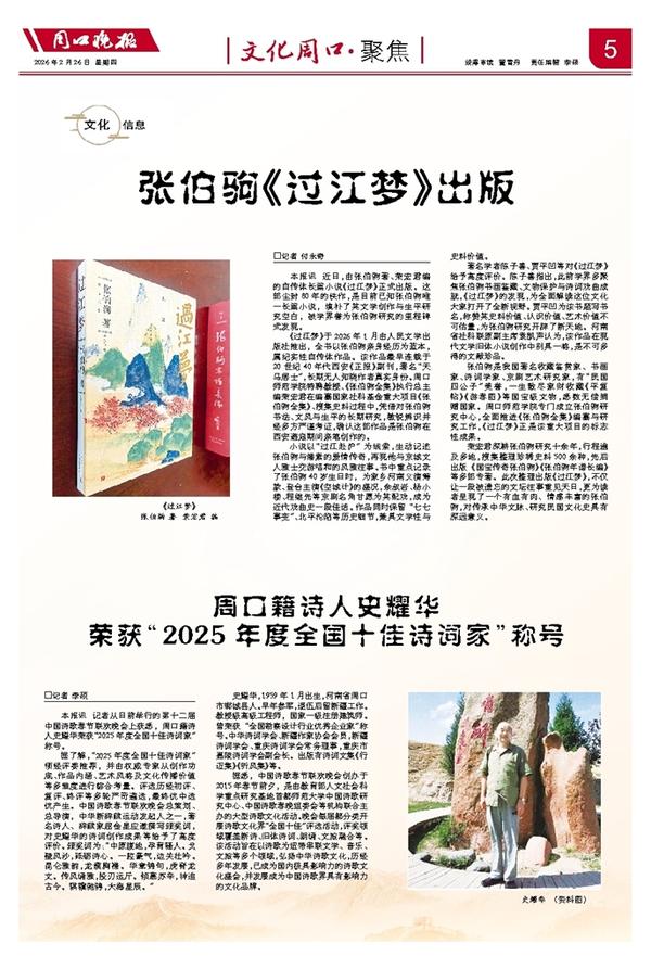 周口籍诗人史耀华荣获“2025年度全国十佳诗词家”称号
