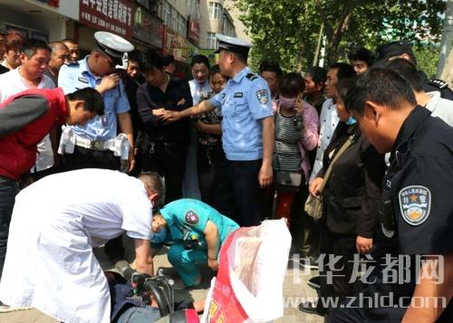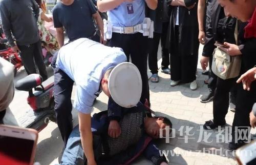 中华龙都网讯(周口报业全媒体记者 李瑞才 通讯员 胡洪涛 刘传保 文/图)5月10日上午10时许,鹿邑县真源大道南关吊桥路口红绿灯下,一年龄50岁左右的男子骑电动车时突然发病摔倒在地面上,过往市民立即拨打120和110进行求救。期间,在附近值勤的民警帮忙疏散围观群众,确保救助现场交通秩序良好,防止过往车辆误伤倒地男子。