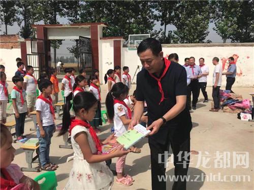 中华龙都网讯(周口报业全媒体记者 牛勇威 通讯员 安琪 谢中杰)5月30日上午,在“六一”国际儿童节即将到来之际,周口市检察院党组副书记、副检察长魏新建带领该院政治部、宣教处、机关党委等相关负责人到扶贫联系点——项城市永丰镇大黄行政村前栾小学开展“迎六一关注留守儿童献爱心捐赠”活动。捐赠仪式上,检察官们现场为孩子们发放了书包和少儿读本,孩子们给检察官们戴上红领巾,并敬礼表达谢意。